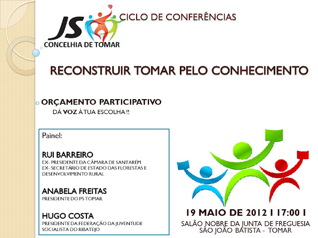 Pelas 19h30, na Estalagem de Santa Iria, decorrerá jantar organizado pela Federação Distrital da JS que terá como convidados de honra, os candidatos do PS às Câmaras Municipais de Ferreira do Zêzere, Sardoal, e naturalmente, Tomar.